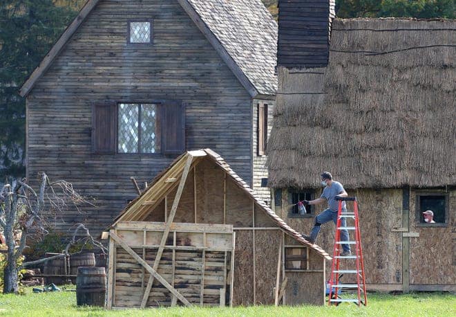 (The village includes nine wood-frame buildings, though most of them are missing one or more sides, only the sides that will show in the movie were fully constructed.)